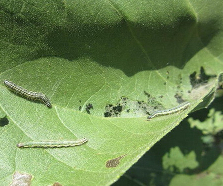 b、次選藥劑:Bt乳劑500—600倍液,或1.2%煙參堿乳油800—1000倍液;