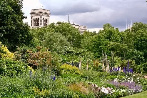 花園的美景令人贊嘆,156米長的草本花境、紫藤覆蓋的涼亭、玫瑰花園以及湖泊。建造于19世紀面積為3英畝的湖泊是花園的一大特色。4個蜂箱坐落在湖中的小島上源源不斷的為王室提供新鮮蜂蜜。還有一個高15英尺、重達20噸的大理石滑鐵盧花瓶石雕,造型很是別致。然而,白金漢宮只在每年夏季(6、7月份)的游園會上對外開放,且僅接納7000名賓客。沒機會身臨其境,就跟著小C和小A過過眼癮吧!