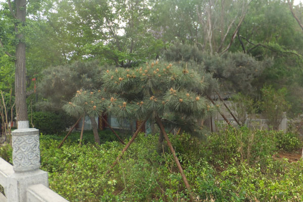 在種植綠化苗木時采用樹姿端莊,蒼翠挺拔,別具特色的白皮松,提升工程品質,體現園林文化。
