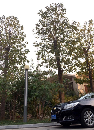 楸樹樹姿俊秀,高大通直,枝繁葉茂,不僅壽命長,而且是綜合利用價值很高的優質用材樹種,在中國博大的樹木園中,唯其“材”貌雙全,自古素有“木王”之美稱,加之楸樹的花為紫色,還有“紫氣東來”之意。位于集團大院東側,游園西側小步行路路北便栽植有三顆高大挺拔的楸樹,它郁郁蔥蔥的綠冠與美術館特有的穹頂建筑相映成輝融為一體。