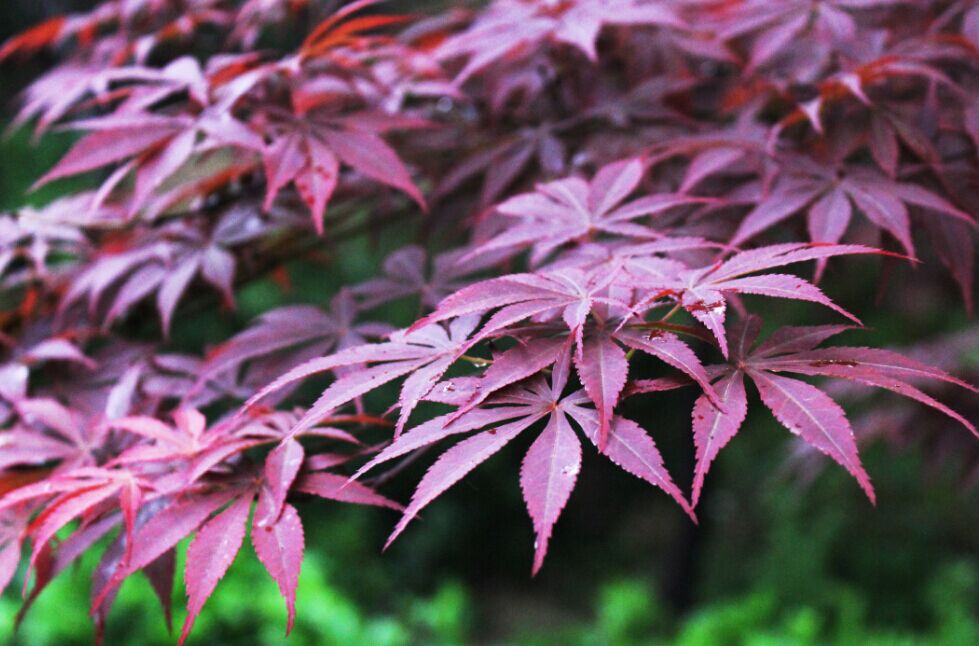 紅楓又名紅葉羽毛楓,為槭樹科雞爪槭的變種,是落葉小喬木,樹高達(dá)9米。它枝條光滑細(xì)長,單葉5—7裂,掌狀互生,葉片長橢圓形至披針形,葉緣有重鋸齒,幼枝、葉柄、花柄都為紅色。花紫色,傘狀花序頂生,花期5月。翅果無毛,10月成熟。