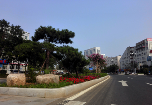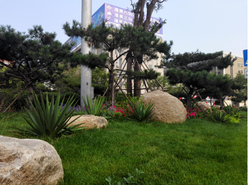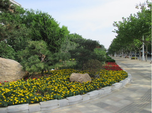本工程位于煙臺經濟技術開發區黃河路(長江路-峨眉山路),全長5.4km,綠化面積約10.4萬㎡。施工內容主要是綠化場地整理、苗木栽植、景石安裝、高樹池砌筑、小樹池砌筑、休閑平臺鋪裝及成品坐凳安裝等。