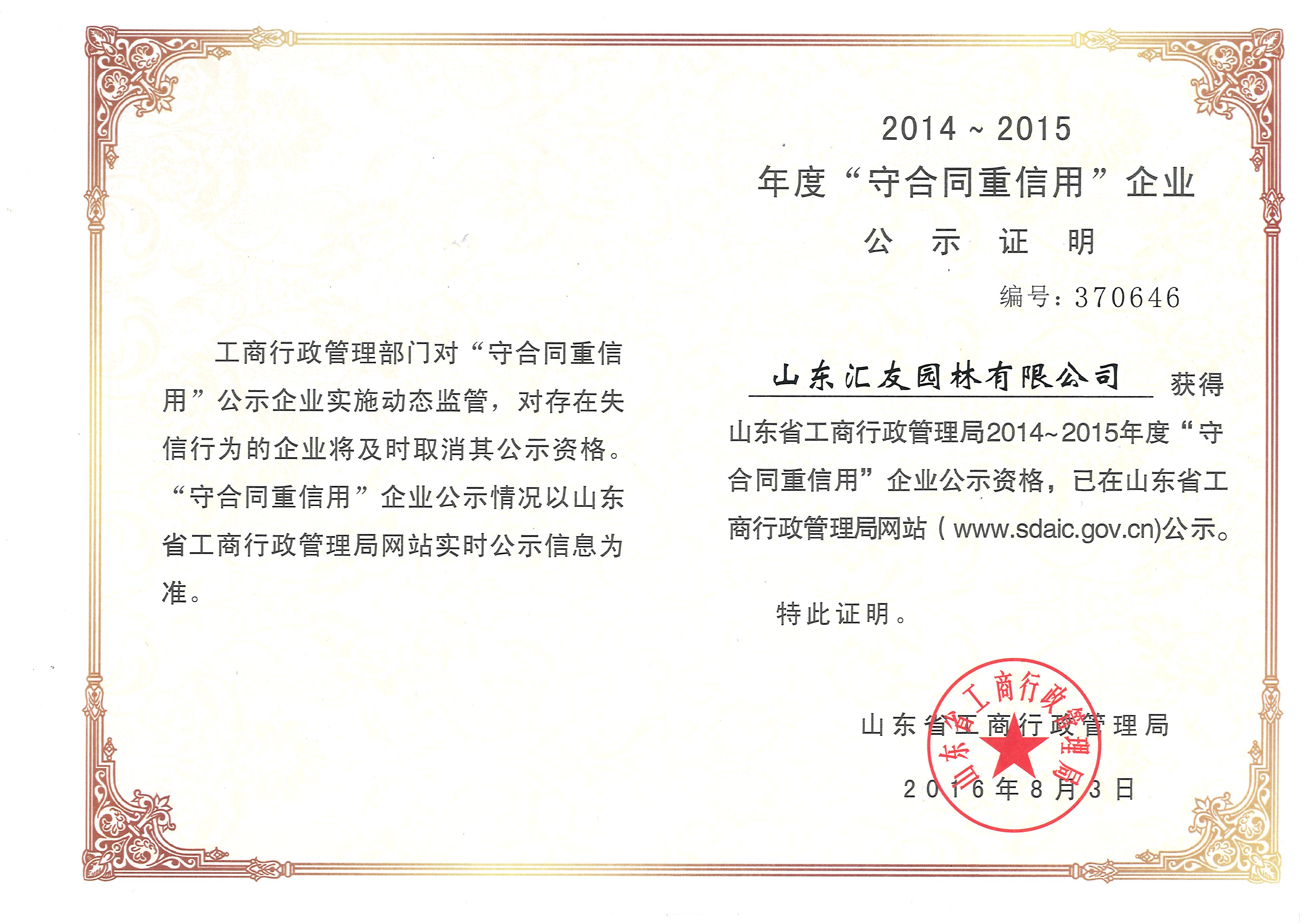 榮獲“山東省守合同重信用企業”榮譽稱號!