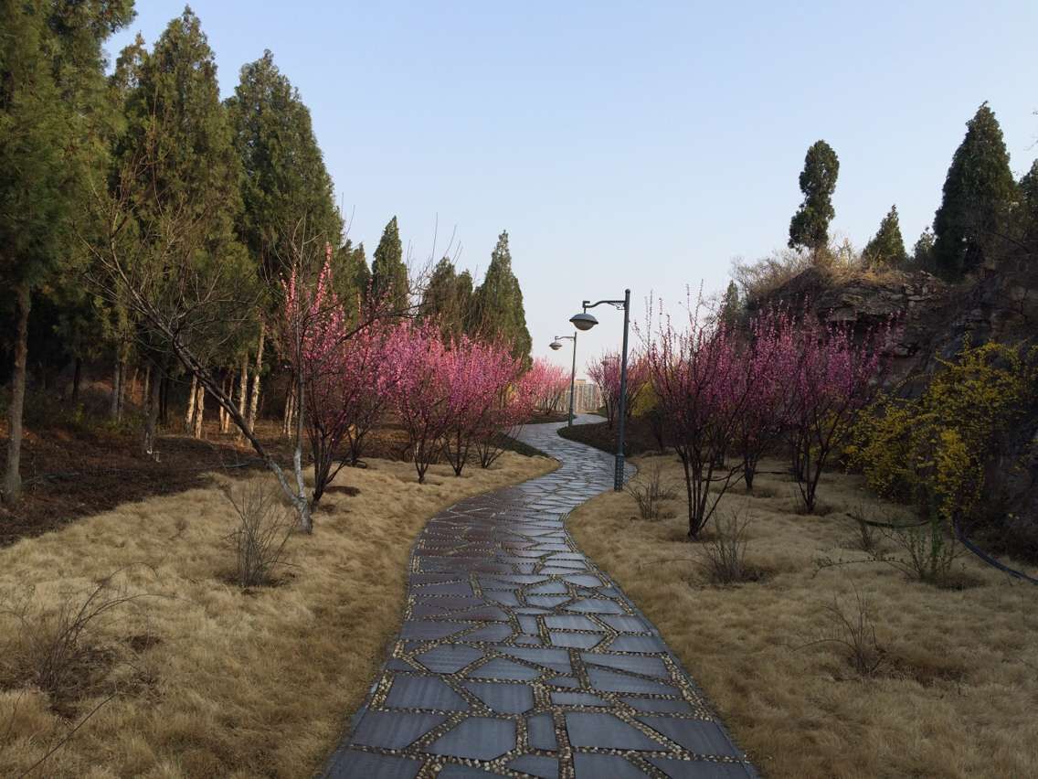 經過春風及春雨的洗禮,章丘龍盤山公園又增添了一份美色。綠油油的葉子烘托出整個公園的生機,粉色的花瓣增添了一份俏皮,假山與瀑布