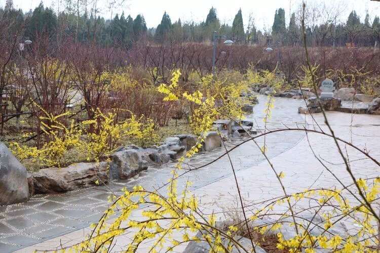 水石交融,與公園內的春色產生佳景,水流與鳥鳴產生了美聲。