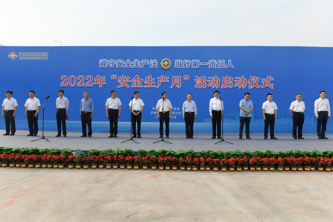 6月2日下午,濟南市安全生產協會暨濟南城建集團2022年“安全生產月”活動啟動儀式在濟南黃河公路大橋擴建工程舉行。市應急管理局副局長高術仁,新聞宣傳室負責人、二級調研員錢永晟,市交通運輸局安全總監劉圣元、安監處處長程鳳國,市安全生產協會會長梁義忠、秘書長孔申成,集團黨委書記、董事長、總經理牟曉巖等集團領導參加儀式。儀式由集團黨委副書記、副總經理劉相華主持。