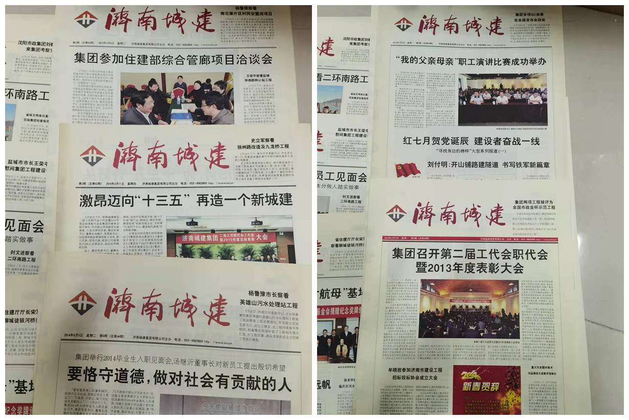 細心翻看這張張泛黃的舊報紙,一股厚重的書香氣息撲面而來,薄薄的紙張不僅記載當下時代變遷,更記錄了城建集團的崢嶸歲月與光輝歷程。2013年《斯里蘭卡政府舉行CKE工程通車典禮》,2014年《濟南再添“百億級航母”企業(yè)》《集團主編首部國家標準出版發(fā)行》《集團首臺工地洗車臺投入使用》,2016年《激昂邁向“十三五”再造一個新城建》《把握發(fā)展脈搏 做PPP項目先行者》等等,無一不體現(xiàn)出城建人勇于開拓、創(chuàng)新求變、實踐擔當、爭創(chuàng)第一的發(fā)展之路。