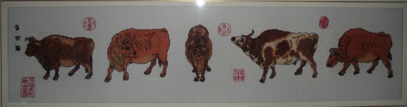 十字繡作品 五牛圖